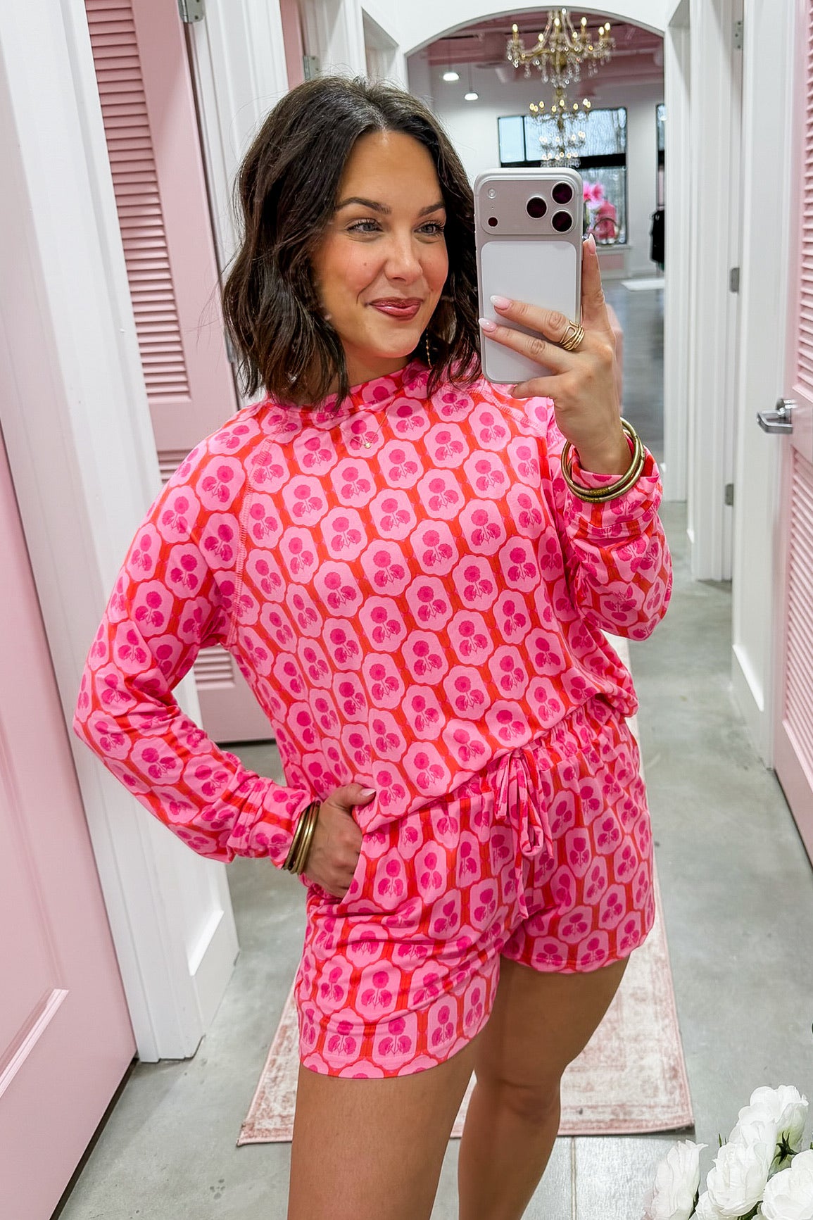 Charming, cheerful, and effortlessly comfortable, The Annie Pink Rosette Charm Short Set by Mary Square is the perfect blend of cozy and cute. Designed in a playful rosette-inspired print with vibrant pink hues, this matching set offers an easy, relaxed fit that still feels polished. Whether you’re lounging at home or packing for a weekend getaway, this set keeps you looking put together with minimal effort.