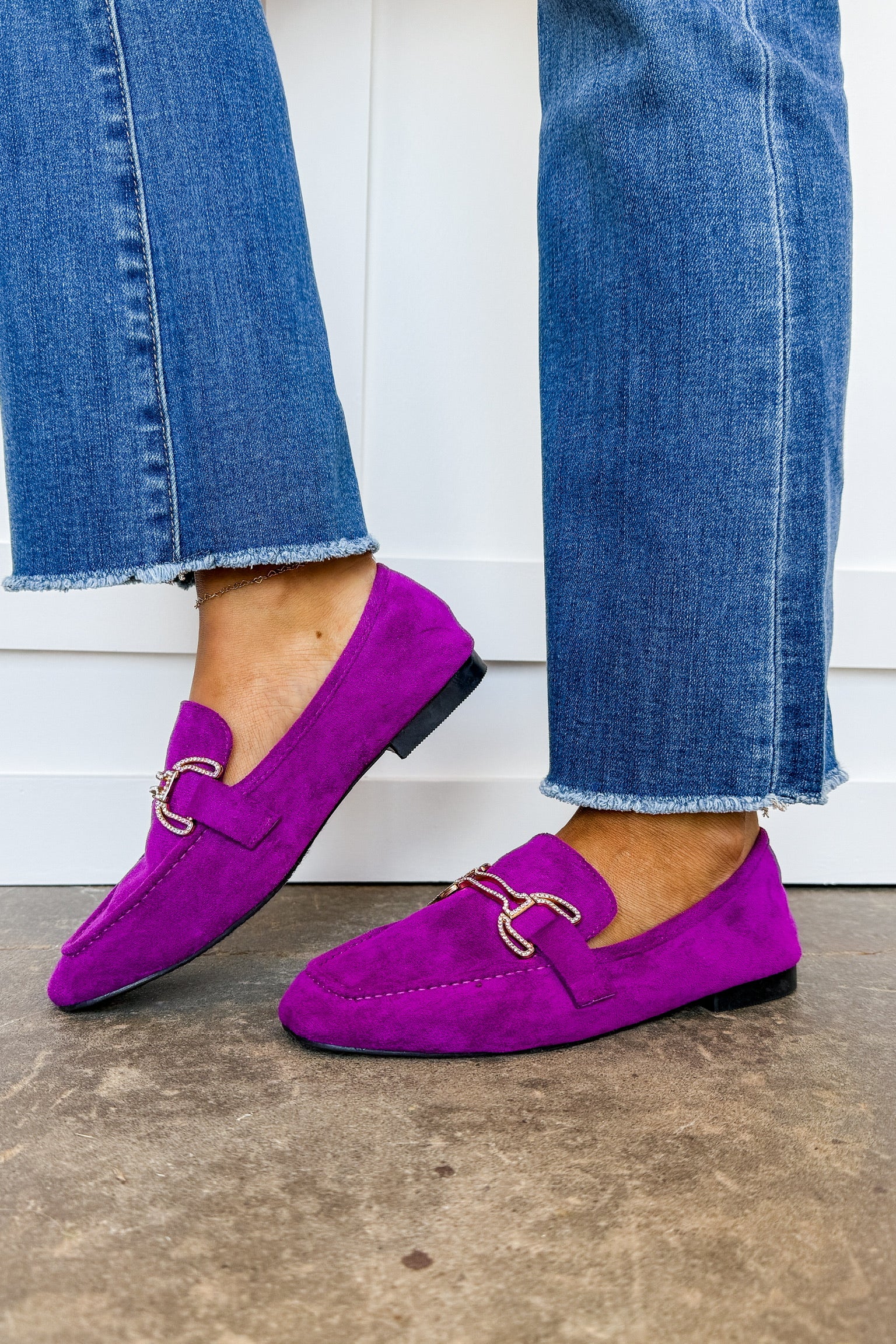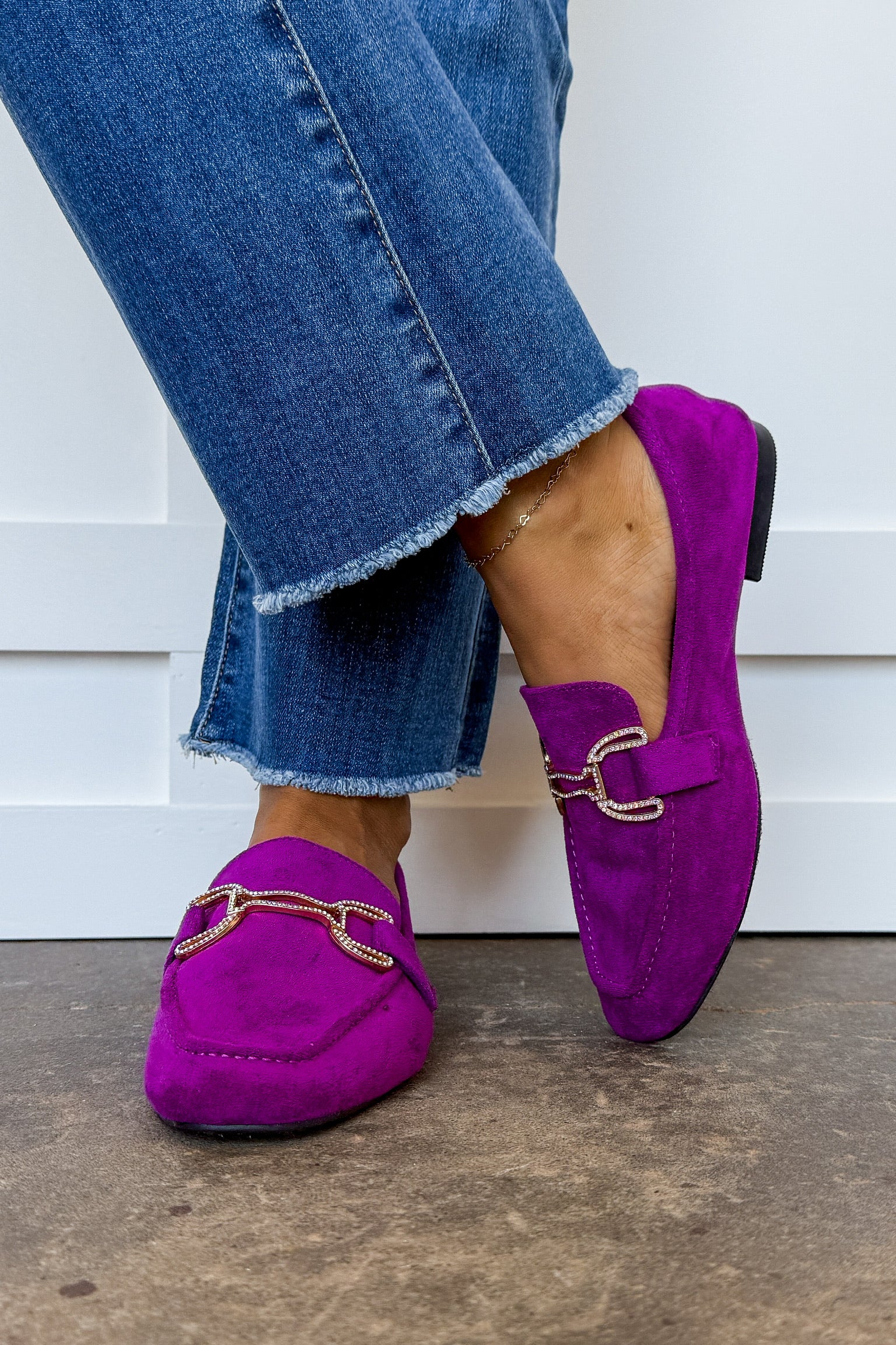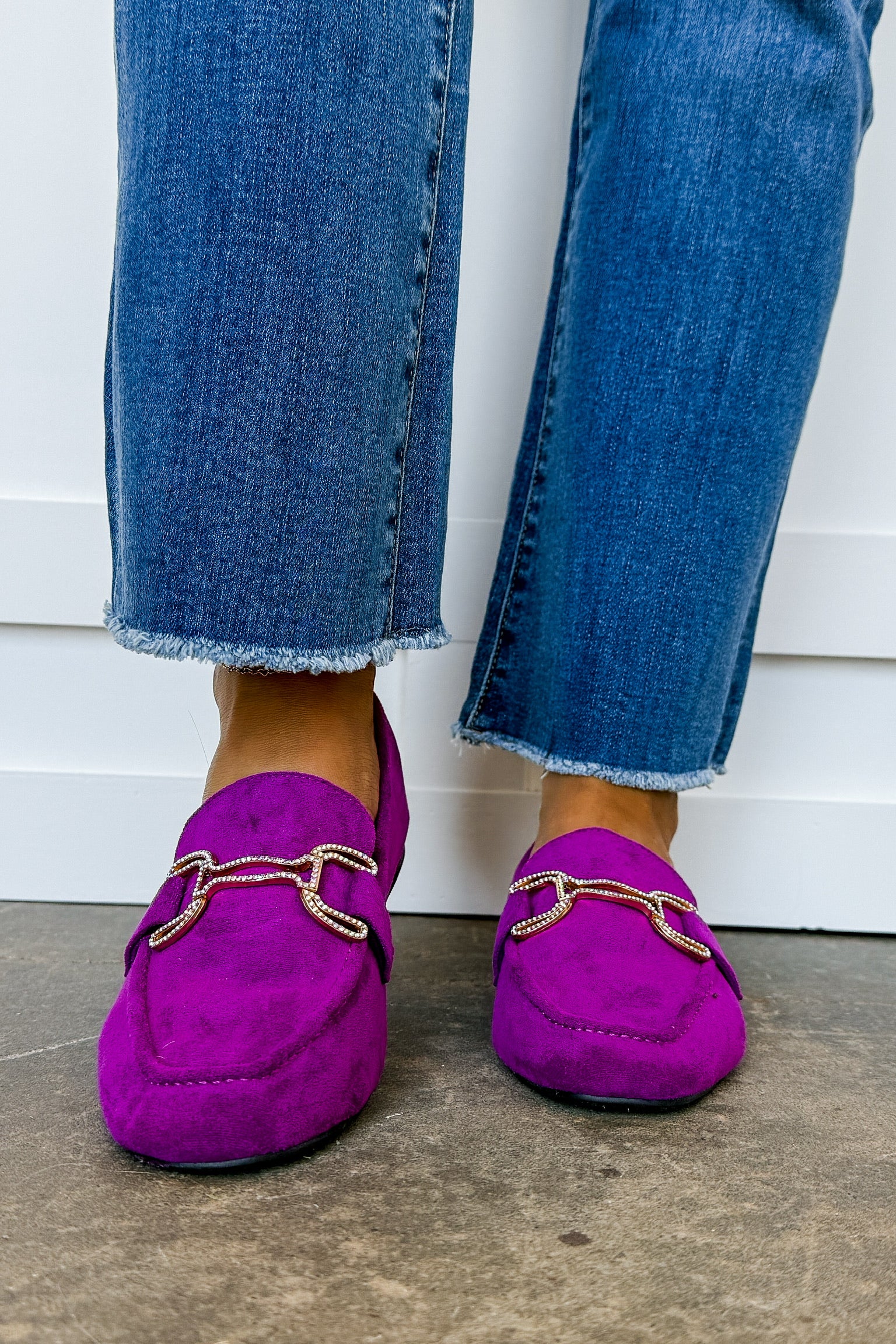 Won the Lottery Crystal Gold Metal Chain Suede Loafer in Eggplant